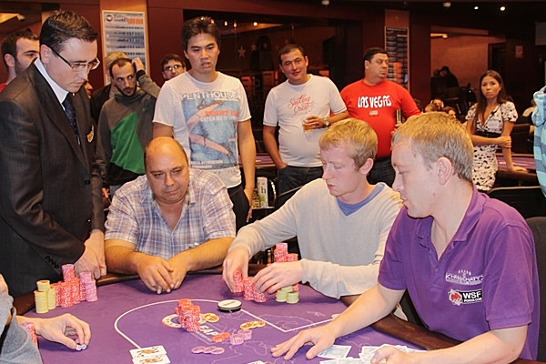 Интересная рассадка получилась, благо что она делается вслепую... За стол к Реттенмайеру отправили в основном коротышей, а вот к Ахметданову подсадили Кометиани и еще несколько больших стеков. Кстати, Важа и Фаррух - единственные игроки, за которых весь день болеют земляки, соответственно из Тбилиси и Ташкента.