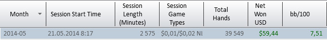 Теперь об итогах: 1. С невысоким внрейтом, но побить НЛ2 мне удалось. Играл 4 стола СХ в начале месяца, а во второй половине месяца перешел на полные. Отыграл немного, дабы не задерживаться на лимите. В общем, вот что получилось: