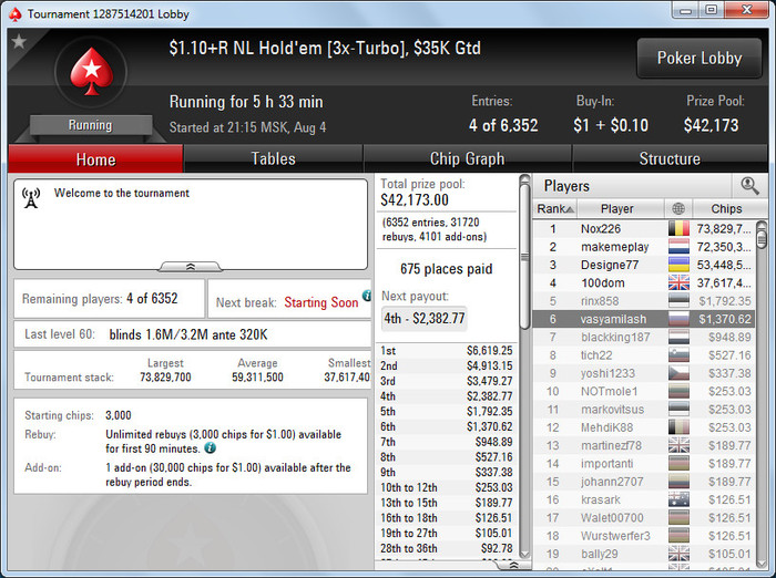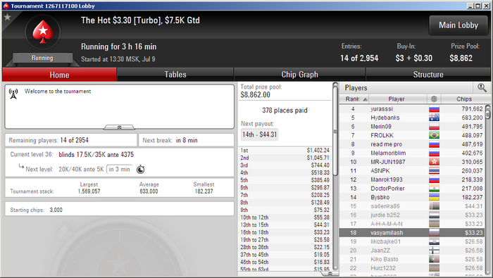 я лично не особо люблю катать топ-3, особенно когда это сопряженно с игрой на других столах (особенно когда полетел постгрю скюль и ХМ не работает, как в этот раз), так что достаточно часто предлагаю поделить. Тот, кто занял первое место, просил 2к сразу, наказать в ХА за наглость не удалось (но все объяснимо - 70к профита у него ро всем дисциплинам).Хоть был перевес фишек у него в два раза, но стеки были глубокие, если бы играл только этот стол не сделал бы той дорогой ошибки, которую сделал (выставился с А2 не посчитав бб, он закрыл на АВ)