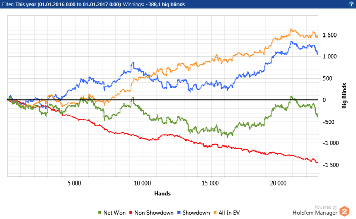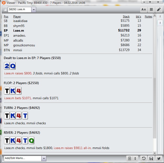 SNGMAFiA, я специально под пот-бет на ривере сайзинги делаю. Сомневаюсь, что его колл плюсовый. Это оппонент, который коллирует трибет-пуши на J9o 18bb co vs bb. Вообще он играет так, чтобы мне какую-нибудь гадость сделать. А на самом деле себе на дистанции хуже делает.