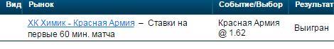 ХК Химик ₋ Красная Армия -Красная Армия @ 1.57