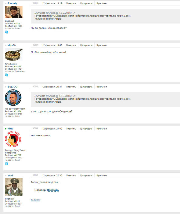 В каком-нибудь шумном блоге будет странно читать набор ответов из пары слов без цитат с рейтингом в диапазоне от 50 до 100. Так будет выглядеть последняя страница темы Дукалиса, например, с фильтром постов по рейтингу 20+: