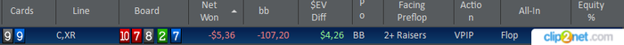 4a4a, не прав ты, Евгений. Против диапазона JJ+, AK у меня 50,5%. Если берём конкретную руку, то у нас 38,6%+миллиард ФЭ. Но мы то играем против диапазона, поэтому на ШД я просто проговариваю "Я сделал все, что мог, сделал верно и правильно, просто опп долбоёб"