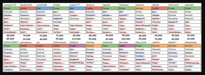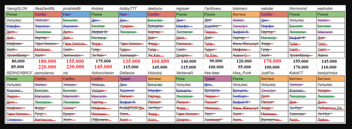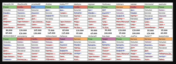 Вроде посчитал правильно, но все равно это промежуточно. На победу претендует человек 5 пожалуй. Те, у кого 4-5 игроков в командах.
