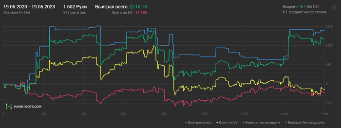19.05.2023: 4.18ч, 1602 рук nl50 +$41.