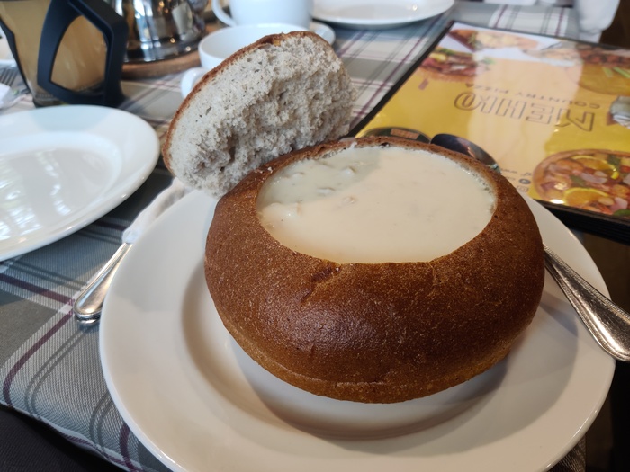 Недавно были в ресторане-пиццерии Country Pizza, если 🍕, ещё я кушал суп из морепродуктов, он в хлебушке подавался, всего 450р стоит суп такой, хороший ресторан.