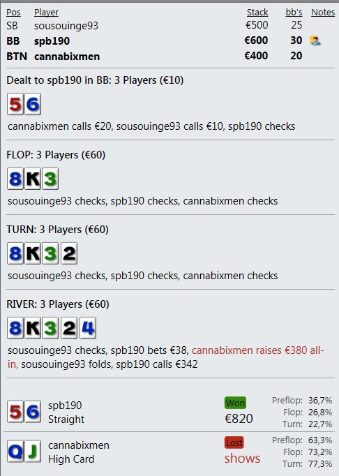 Я, кстати, на флопе подумал, что мне крышка - ну так сдают сегодня... но устоял.