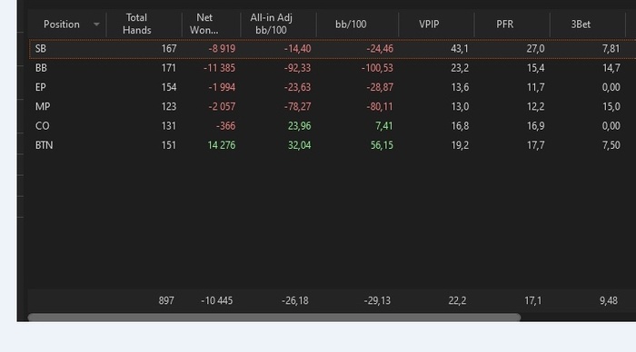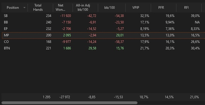 Встроенный отчет кажет ерунду, потому что при уменьшении количества игроков за столом, у него сначала пропадает позиция "МР+1", потом "МР" и так далее.