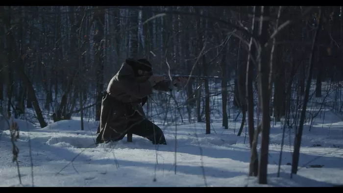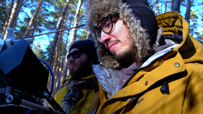 Перед съемками мы с режиссером и оператором поехали искать локацию. Я, не подумав, вырядился как клоун в легкую одежду. В итоге прямо так и ползал по сугробам пару часов в поиске подходящего места. Нашли мы такое место на берегу реки в небольшом лесу. Сибирь довольно живописна в этом плане, подобные локации выглядят примерно так: