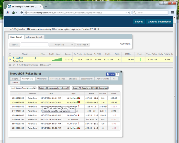 посоны, пробейте плиз меня по шарку за сегодня подробно, такое ощущение, что бабки кто-то пиздит с акка, я должен был плюсануть сегодня в два раза больше чем по факту получилось, не пойму чо за хуйня (последний турнир для пробивки - фриза 33 где я второе место занял, дальше не надо)