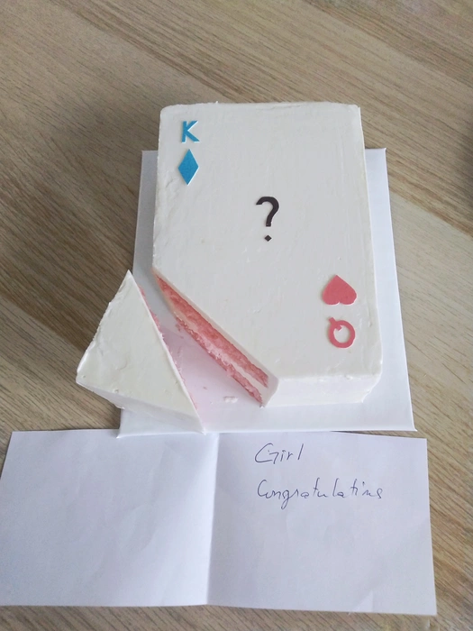 После долгих обсуждений мы решили остановиться на довольно популярном варианте с тортом, цвет начинки которого соответствует полу ребенка. На самом УЗИ мы сообщили об этом врачу и она говорила нам, когда нужно закрывать глаза, чтобы не узнать все раньше времени на экране монитора, а в конце отдала нам конверт с записанным полом ребенка.