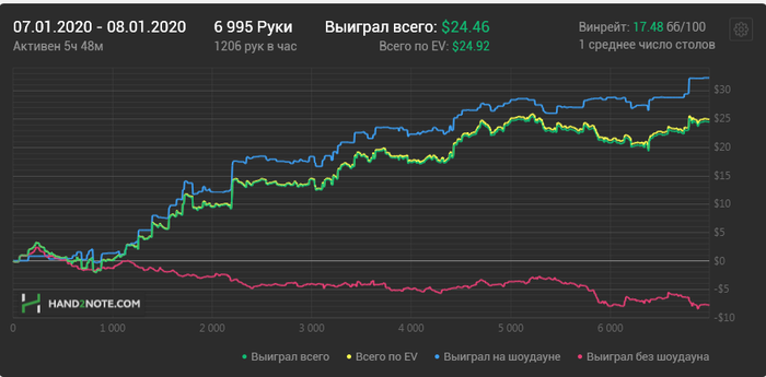 Искренне рад за тебя Вить, еще вся жизнь впереди. Хороший винрейт. Хочешь сказать с таким невозможно зарабатывать 1к в месяц на 25-ке играя 40-50к рук в месяц?