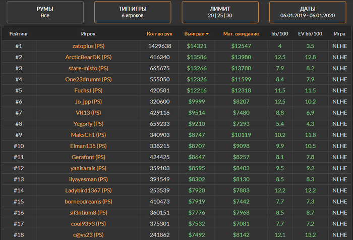 У нижнего игрока в таблице ДВАТЦАТЬ ТЫСЯЧ рук в месяц, если мы увеличим его дистанцию хотя бы до нормальных 40к в месяц, то у него уже будет около 14к, то есть около 1200 в месяц, ок, даже убавим винрейт и будет 1000 в месяц, а ведь он мог бы и 50к отыграть, да еще и капа столов не было тогда.