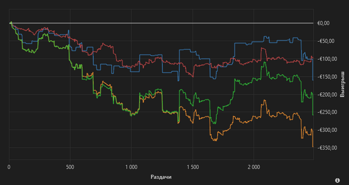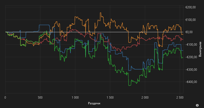 Но на контрасте со стразами всё больнее воспринимается, есть такой момент, само ощущение от игры, как будто куча ботов тебя ебут в каждом споте c идеальной игрой, а хм3 подкручен и мне мой ввсф там рисуют, тк ни 1 банк нельзя выиграть, ни 1 вб не поставить чтобы в ебало пуш не прилетел, за ласт 20 к у меня синяя тупо в минусе )) ну такое, просто играя по 30к в мес я не рассчитываю особо ни на какие резы с ред стара, потому что помню сколько было отрезков по 100к+ в 0 тут и потом всё как-то выравнивалось)