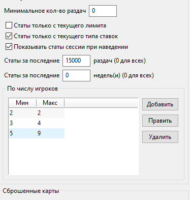 Я думаю статы данной сессии относительно ненужная вещь, хотя может кто-то поспорить. Может есть возможность исправить сам хм3 , что бы двойном клике отображались фул статы не в зависимости от количества человек за столом. Думаю и ребятам которые кеш катают тоже будет в кайф. Сидишь играешь 3м с регом и любителем на которого 300 рук. Двойной клик - глянул тенденцию общую игры любителя и катаешь себе с разбивкой по количеству против рега дальше.