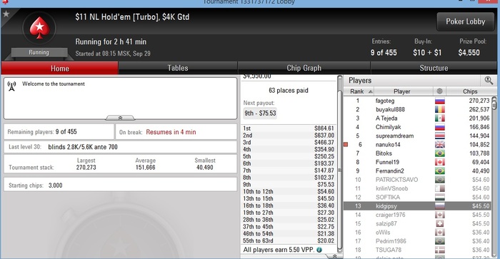 Зум за 4.4$. По флопу дал алл-ин оппонент рядом просидел все время еще и отключил интернет, через секунд 8 появился и дал колл. В пи.... этот онлайн геймлинг, лучше вон на wpt или rpt поеду там хоть людей видно и можно действительно наиграть за ночь. Походу тут только, когда новый аккаунт создаешь можно выиграть в течение первого календарного месяца.