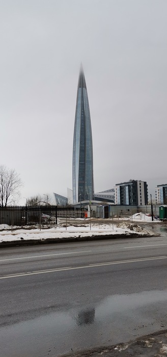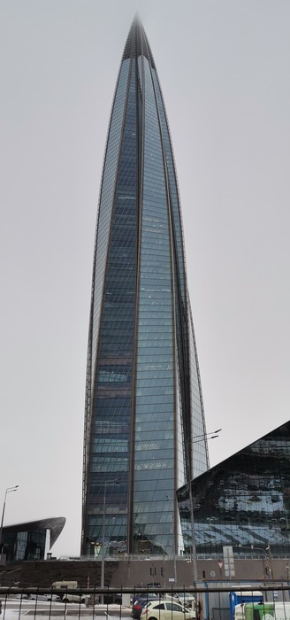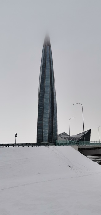 Самое высокое здание в Европе - Лахта-Центр, вершина теряется в облаках))