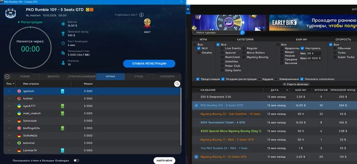 Турик уже идет якобы 13 минут, у меня столы не открываются, а также с зареганных туриков, которые еще не начались, не снимается регистрация...