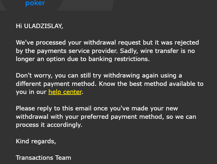 isaev222, на банку какого банка пытаешься вывод сделать? мне вот 2 раза пытались отправить на Альфу, 2 недели ждал, в итоге вот такое письмо пришло