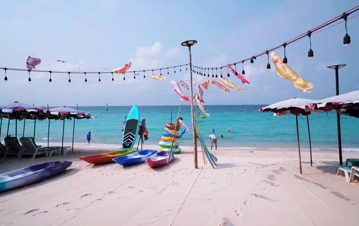 На острове быстро загружаемся и едем на пляж Monkey beach - самый красивый и спокойный пляж Ко Ларна, не смотря на немного цыганское оформление