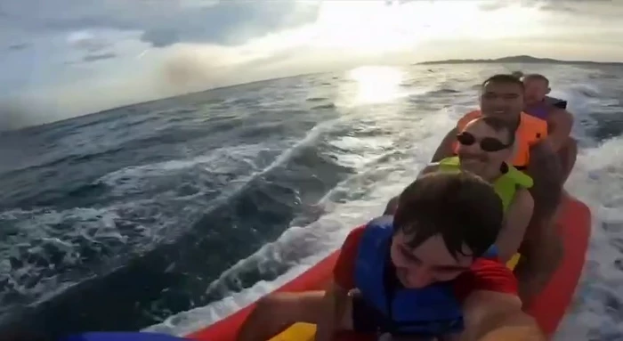 Время плавно клонится к отъезду с острова. В прошлый раз ребята договорились с местным воротилой, чтобы доехать на банане вшестером за 3000 бат и перевернулись всего два раза.