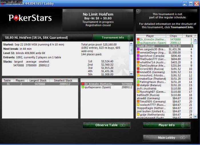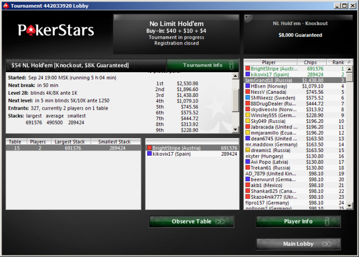 вылетел в итоге КК<A4 префлоп,но тенденция в мтт радует, хоть переходи в них
