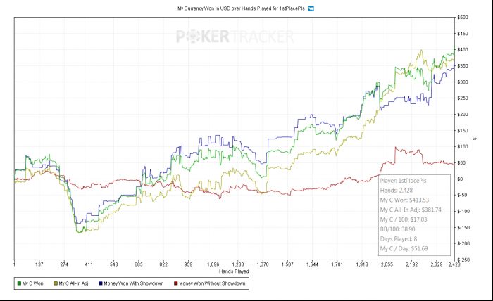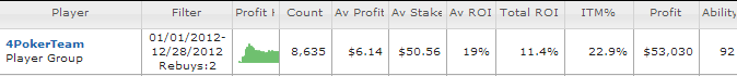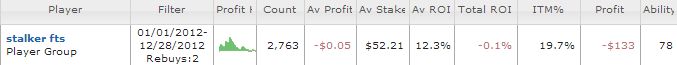 На этом, в принципе можно было и закончить отчет, потому что недодача в 9,5 млн. фишек за 340 тыс. рук не предполагает объективной оценки уровня игры. Я мог играть прекрасно или мог играть плохо, но в любом случае сослаться на недодачу и сказать, что виноват однорукий человек. К слову сказать, до 2012 года я сыграл 680 тыс. рук с недодачей 7,2 млн., так что выводы делайте сами. Но отчет продолжим, а недодачу примем как факт. В остальном, я стал играть тайтовее, соответственно стал чаще доходить до шоудауна и выигрывать на нем (это все по сравнению с предыдущими годами). Я много проиграл без вскрытия и мне это очень не нравится. Наверное, это признак проблем игры в поздней стадии. Хотя я и стараюсь играть максимально агрессивно концовку относительно стола, но, видимо, получается у меня не очень. Впрочем, это тоже вопрос, да и дистанция не та.