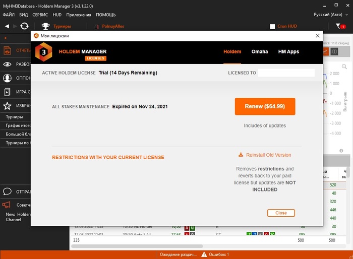 хм3 после запуска покерного клиента(888) и начала катки выдает сначала такое окошко