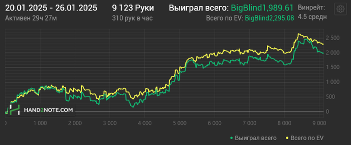 Мы играли наверно до 9 утра. Сыграли 700-800 рук, у випача на этом ране был выигрыш на шд под 70%, стоит ли рассказывать, что там происходило. БОЖЕ АД!