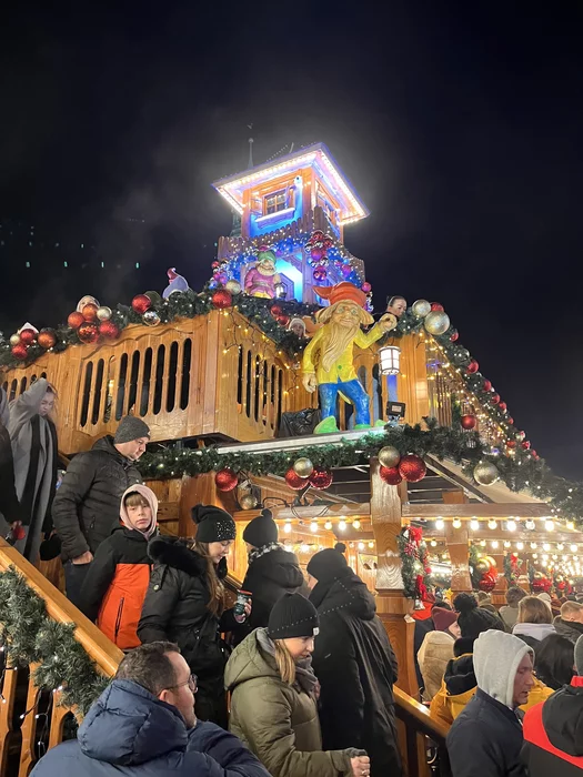 На плошади людское море, не протоклнуться, уже вовсю развернулась рождественская ярмарка, люди гуляют, отдыхают. В ресторанах все битком.
