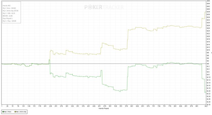 Эти мудаки из суппорта шлет общую историю с общим процентом, который очень красивый. Но и ежу понятно, что рука руке рознь - когда все сбрасывают префлоп и когда высокие ставки. Так вот при высоких ставках сильные руки переезжаются явно не по математике.
