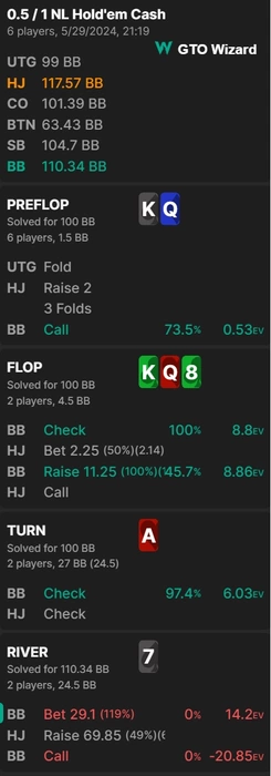 Против рега, что блефуем по линии БXБ, насколько широко имеем право переблефовать ривер или наоборот в этом споте стоит притормозить, тк широко будут отбивать из-за достаточно сильного диапа сб и широкого диапа бб? На ривере СБ должен ставить весь свой рендж(визард подсказал) , но кажется что поляна тут перечекивает свои велью руки типа Jx( могу ошибаться)