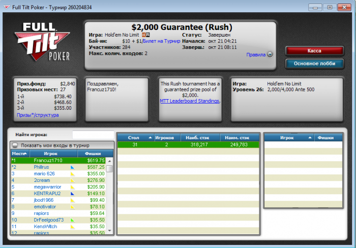 ReadytoLearn @ 19.10.2013 Извините, но голову ВООБЩЕ снесло просто?!"?!?!? Как можно было вообще со 120млн фишек при наличии коротыша с 14млн предлагать вообще делить что-то, да ещё и по ICM в 3 максе?!?!?!!?!??!!??!КАК?!?!?!? я вообще в шоке! от радости мозги выключились что ли окончательно??? я в ахуе, как можно было соглашаться вообще на делёжку, да ещё и самому писать, что давайте делить по ICM ( стек хиро - 120млн, у второго места на момент делёжки - 55млн, у шорта- 14 млн при блинах 700k/1,4KK). Я очень рад, что получилось у тебя ( ни в коем случае не подумай, что от зависти) но сейчас посмотрел от нечего делать повтор - ну это пиздец, как можно быть таким.... лохом.