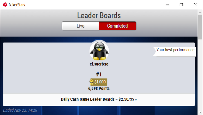 Прикольная, но только не справедливая кмк. Думаю, стоило перевернуть все вверх ногами. Тем кому хуже всего заходит давать больше очков и место выше, а тем кому хорошо заходит эти 300 рук наоборот, меньше очков и места в подвале таблицы. А сейчас получается, что людям отлично раздали префлоп за 300 рук, так еще и сверху накинули несколько би.