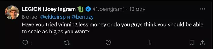 Еще он подчеркнул, что есть несколько джокеров в рукаве, но никаких доказательств нарушений по зафриженным аккаунтам Покерок до сих пор не предоставил, сколько недель ждать? (особенно с учетом того, что реальную работу СБ по выявлению ботов и суперюзеров выполняют фонды). У нас все случаи одинаковые - людям отменяют внутренние переводы, режут лимиты на вывод, отменяют кешауты. Это выглядит как попытка максимально напакостить, когда нет никаких нарушений. Я всерьез начинаю думать, что под джокерами Брыксин подразумевал не пруфы, а амбассадоров покерка.