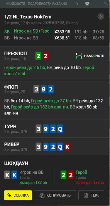 Но сама сессия была огнище. Появился випач на нл200 который играл жестко и очень агрессивно. Я оказался с ним на двух стлах, под утро уже игра развалилась, по итогу мы оказались на двух HU столах.