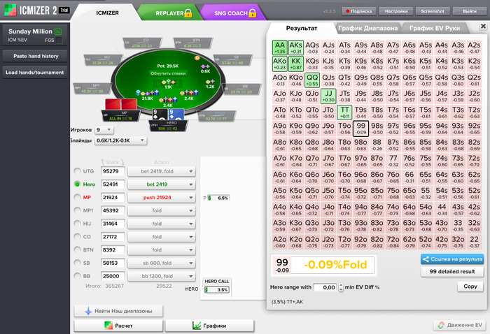 Резюмируя все выше написанное, можно сказать, что: в регулярном турнире эта раздача имеет место быть. Просто колишь и открываешь новый турнир в случае проёба, но тут случай исключительный, хошь коль и катай монетку, а хошь выкинь и сиди спокойно. По мне так, что ты бегаешь по форуму, чтобы получить положительный ответ на свои действия в раздаче и тем самым оправдаться среди дольщиков. Видно, что опыта в таких турнирах у тебя нет.