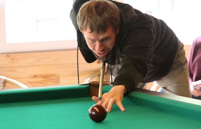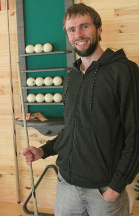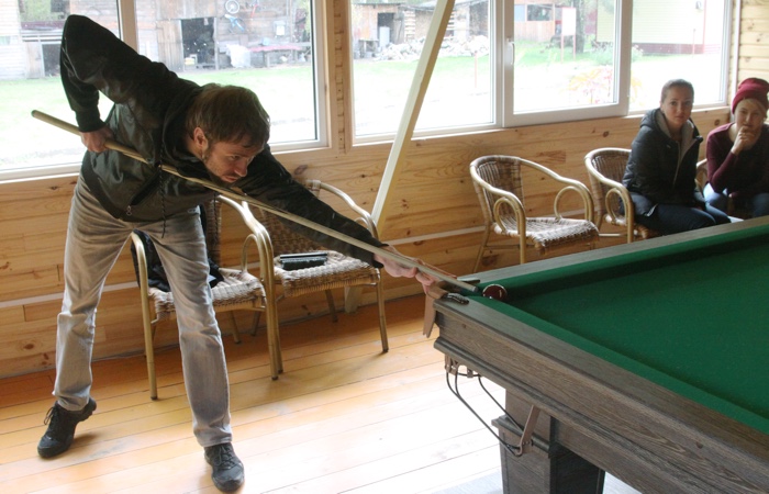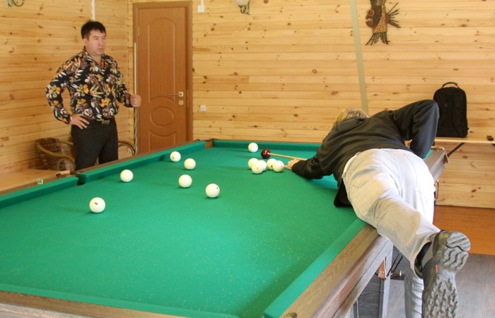 Как и было вчера объявлено, Маньшин вызвал Бикметова на матч-реванш - на бильярде. Пацан сказал - пацан сделал, и ровно в два Булат подъехал на территорию Влада. Тот из небогатого выбора местных бильярдных предпочел ту, рядом с которой живет: ровный стол, новое сукно, неплохие кии, даже мел есть ;)