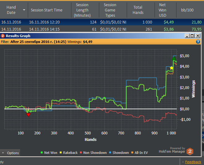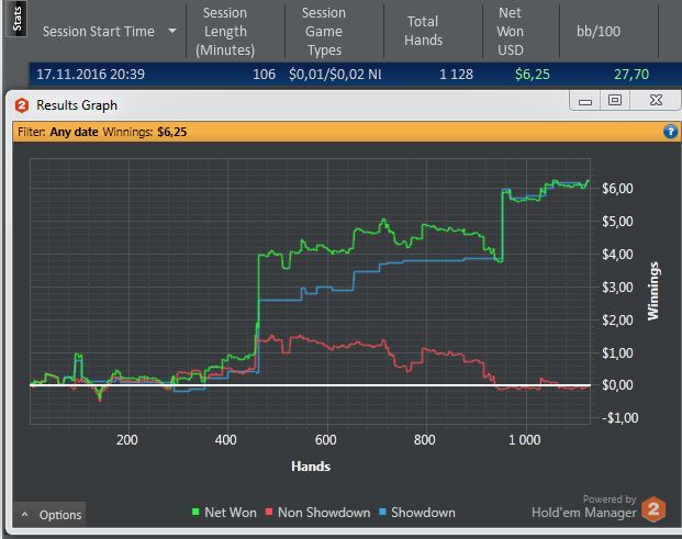 А пока играю мало, не минусую. В графиках смысла нету. 300рук+76bb/100, 100рук+52bb/100 в таком плане все. Какая то усталость накопилась, надо бы встряхнуть себя, но как?