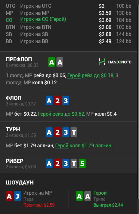 А вот это раздача топ-3 по выигранному банку гораздо интереснее,так как тут я вообще не очень понимаю как правильно сыграть, и норм ли я сыграл,