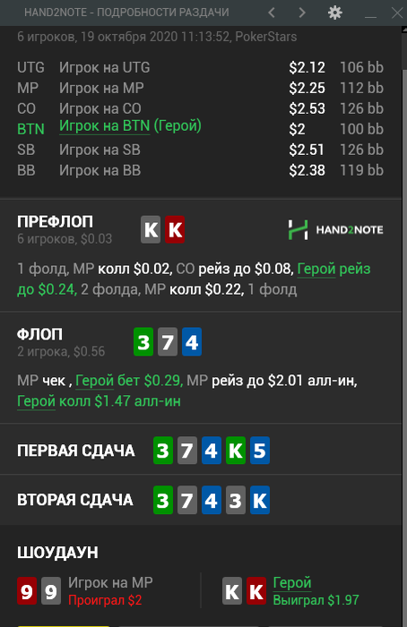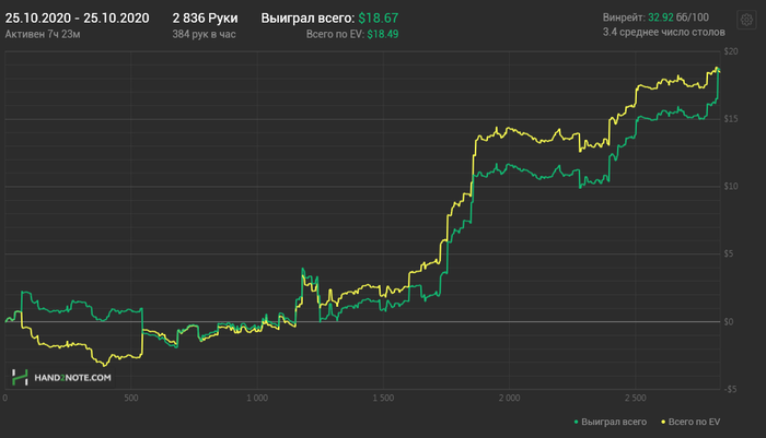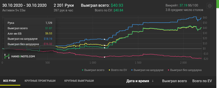 до этого полторы сессии была душнина - учился выбрасывать на овербеты и чек рейзы на нл 2 с топ парой от нитышей и терпеть проигрывать префлоп выставления, когда впереди)) понятно дело было, что и мне везло, да и в целом недобор по евэхе 10 би на 15К рук - это точно не самый жесткий недобор за всю историю покера, но бесит)). Но нормально, работаю дальше, вспоминаю префлоп диапазоны различные, немного уже и постфлопа добавил. Думаю на нл2 отыграть 30К рук, а там посмотрю по винрейту и по ощущениям, в принципе бр позволяет то и сейчас играть нл5, но еще недельку точно покатаю на нл2.