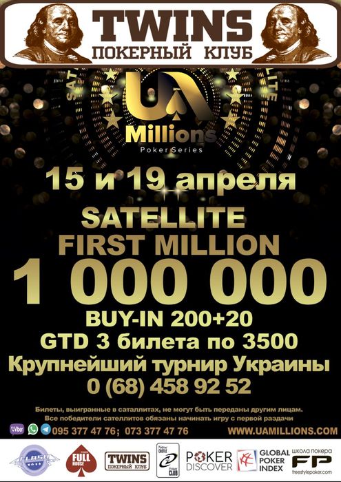 Не упустите свой шанс бесплатно выиграть билет на турнир FIRST MILLION Flight 1A (3500 UAH). 17 апреля мы определим победителя среди всех, кто выполнит условия акции. Победитель будет определен с помощью сервиса random.org.