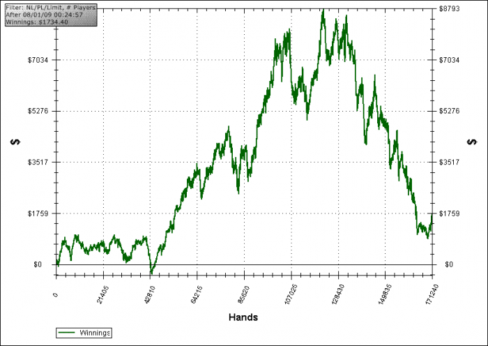 https://forum.gipsyteam.ru/index.php?viewtopic=6840https://forum.gipsyteam.ru/index.php?viewtopic=6805Был оптимистом, читать меня было сложно, т.к. диапазоны были под 70% с любой позиции, поэтому оплачивали мне неплохо, но и отдавал я очень много (но сначала меньше, чем забирал). Я очень мало думал про оппонентов, потому что под меня все подстраивались почти одинаково, что неудивительно - не так много вариантов играть с маньяком ) Так что я тоже хорошо всех понимал, несмотря на такой префлоп, постфлоп играл аккуратно и наверняка, но выяснилось, что этот стиль возможен только при "нормальном" распределении EV. Если начинаются кулеры и недобор, то дыры, из которых выпадают бай-ины, становятся очень большими )