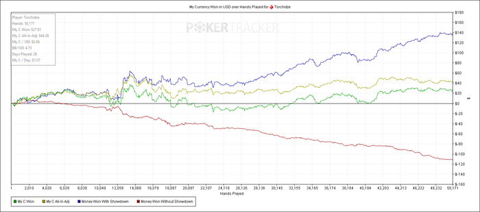Вот,сейчас сижу и думаю,как я раньше так играл,какие линии использовал? Где дожимал оппов.И это еще тогда кувикнул ноут и не загрузился нл50 зум где красная просто в небо шла.Я уже не помню как играл в такой покер.Полазил по тренерам,дороговато и не факт что поможет,слишком много уже автопилота,причем судя по результатам автопилота несбалансированного.Надо загрузить всю свою историю,проанализировать раздачи,избавиться от страха.Я себя ловлю на мысли,что кроме страха идти на лимиты выше у меня хренова туча раздач где я не доигрываю,боюсь ставить,боюсь блефовать,боюсь проигрывать и это сказывается на результатах,поведение красной линии как пример.Чувствую себя в покере как Гадя Петрович Хренова,полностью потерянным.