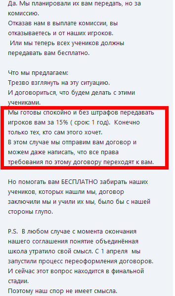 . Если какие-то из игроков объединенного соглашения перейдут в ГС, то почему мы не должны получить никакого %?