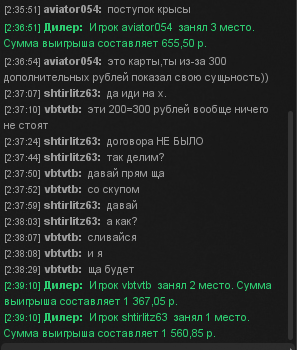 Дамы и господа! Предлагаю вашему вниманию чатик. Ситуация следующая... Финальный стол, решили поделить, но пока другие рожали что да как я собрал фанту. Порешили после этой раздачи поделить, но у меня случился повтор фанты. В результате делить пришлось на двоих. Что такое "со скупом" я вообще первый раз услышал, да и нах. мне это надо, если у меня уже фанта почти готова? За что меня назвали крысой и где я не прав?