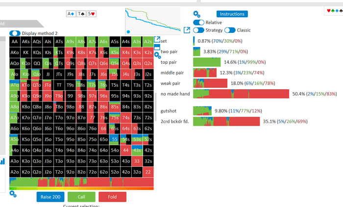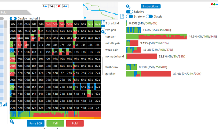 Ну ещё как общую стратегию можешь использовать то,что видишь в солвере, без соблюдения частот ,чтобы понимать, какие группы рук как играть в среднем