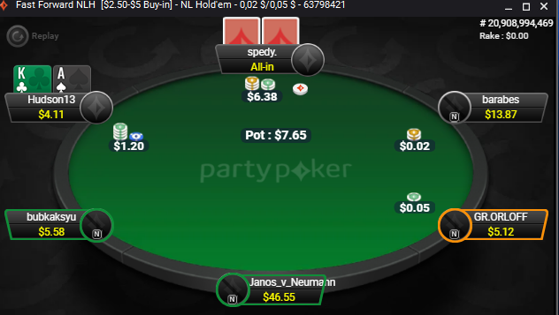 Я удвоился об него с AJo vs A5o и был близок к тому, чтобы выйти в плюс на этом столе. Но...