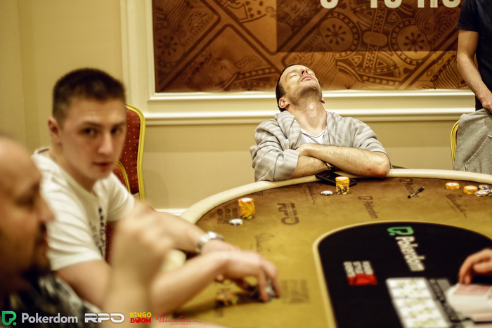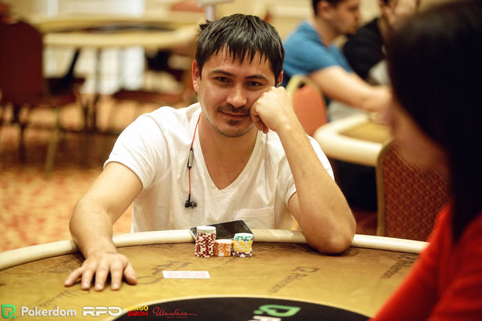 Мальцев Илья UTG рейз 70К. Все пас, Бирюков колл, за спиной 180К.