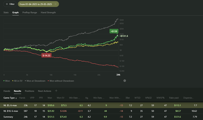 Первые 10к рук такое себе(было закрепление материала и много свинской игры из-за говнеца в жизни) мог бы и лучше отыграть.